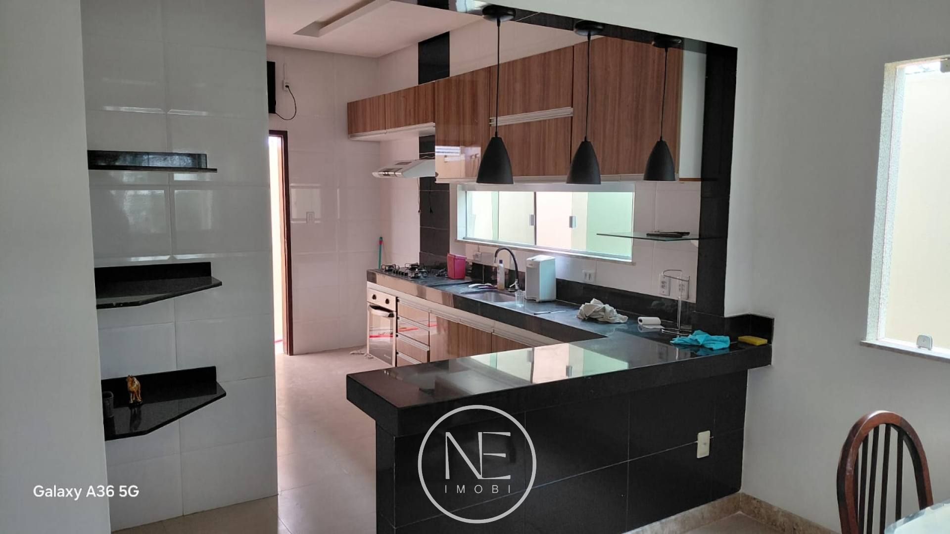 Cozinha planejada com armários, cooktop e forno